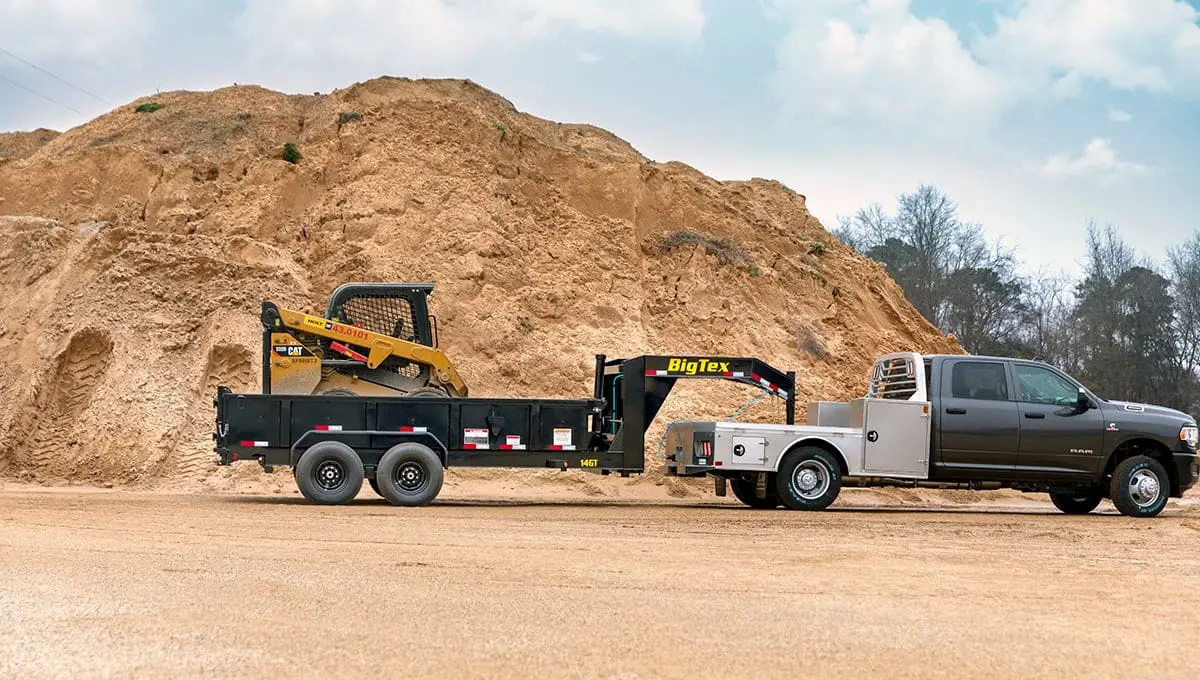 Delivering rock-solid hauling performance for professionals in construction and landscaping, the 14GT Heavy Duty Telescopic Gooseneck Dump is built from the ground up to offer superior (and smoother) lift for any load. How? With its heavy-duty gooseneck and 12-ton, 3-stage telescopic hydraulic cylinder, that’s how. This trailer handles large, bulky cargo and debris—even uneven or loose materials—with ease, thanks to its advanced engineering and design. A feature-packed dump box comes loaded with an integrated crank-style tarp shroud and tarp, D-ring tie downs, and a rear combo gate to make sure heavy-duty haulers are equipped for whatever the workday brings.