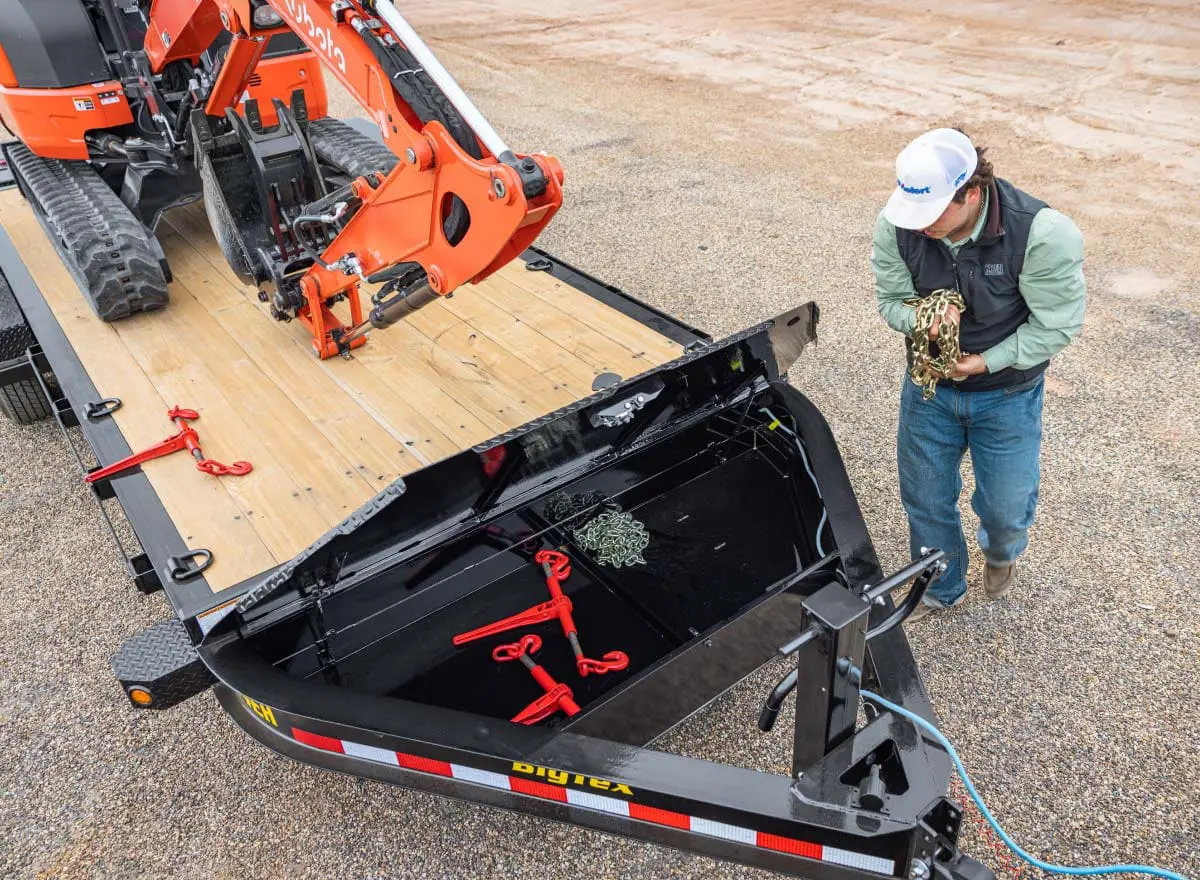 Part of the all-new X-Series, the 16EH Equipment Trailer from Big Tex Trailers is engineered for professionals who demand durability and innovation. The 16EH features a Mega-Sized Toolbox for added storage capacity. It's enhanced with a Full-Length Rub Rail, D-Rings, and Stake Pockets, providing multiple secure tie-down options for a variety of cargo. The 16EH revolutionizes loading and unloading with its optional Self-Stabilizing Mega Ramps, offering unparalleled flexibility for all your hauling needs.