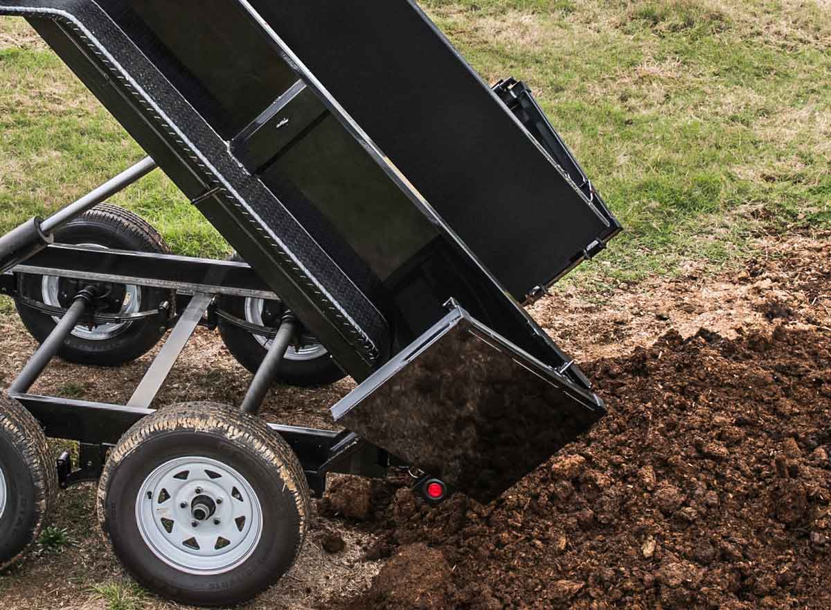 For those who need a light-duty trailer that has more power to tackle unpredictable tasks, the 70SR Tandem Axle Single Ram Dump Trailer is built for you. Haul and dump mulch, dirt, gravel, and other light loads with confidence around the home or farm with this durable and reliable trailer. Equipped with a lockable battery box and straight ram hydraulic lifting system, the 70SR offers a secure and versatile experience that’s designed to meet the needs of hardworking homeowners, industrious farmers, and ambitious go-getters—someone just like you.